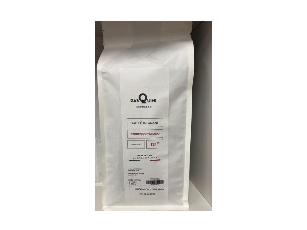 Qualitá Caffé ESPRESSO ITALIANO je nejoblíbenější káva z pražírny Pasquini. Caffé ESPRESSO ITALIANO vyniká silnými, kořeněnými a oříškovými tóny, spojeným hustou krémovou a celkově plnou chutí s mírně hořkým zakončením. Caffé ESPRESSO ITALIANOje směs arabiky a robusty, díky tomu nenacházíme výrazný kyselý tón. Tato směs je jednou z nejstarších a nejtradičnějších směsí naší pražírny a díky své dlouhodobé popularitě se podílela na vybudování kávové kultury v celé Evropě. Tato káva je zcela vhodná pro přípravu nejen espresa, ale i jiných kávových nápojů. Vzhledem k vyššímu obsahu kofeinu je vhodná pro dopolední a odpolední popíjení. Na večerní popíjení doporučujeme kávu s nižším obsahem kofeinu.