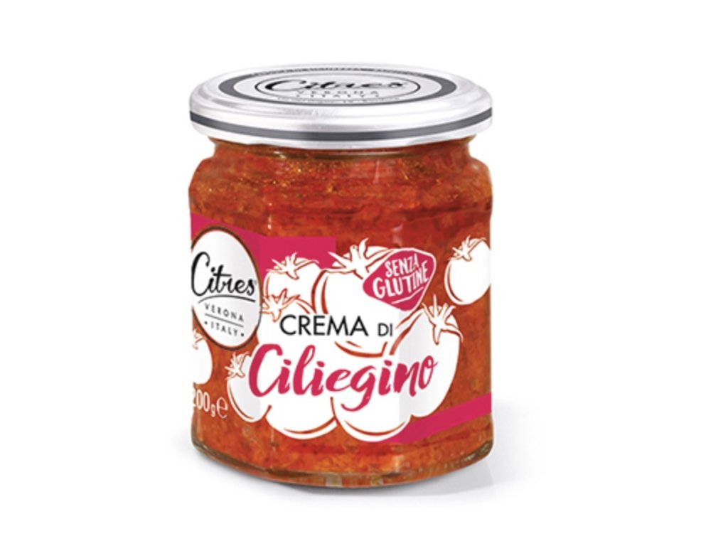 Citres Crema di Ciliegino je lahodná pomazánka z cherry rajčátek, která vyniká sladkou a lákavou chutí s lehce agrodolním nádechem. Hlavní složkou jsou čerstvá cherry rajčata (60 % produktu), připravená za studena s použitím inovativní technologie, která zachovává chuť, aroma a barvu suroviny. Krém je všestranný a snadno použitelný – ideální na bruschetty, sendviče, focaccia, slané koláče či jako chutný dip nebo příloha k aperitivům.