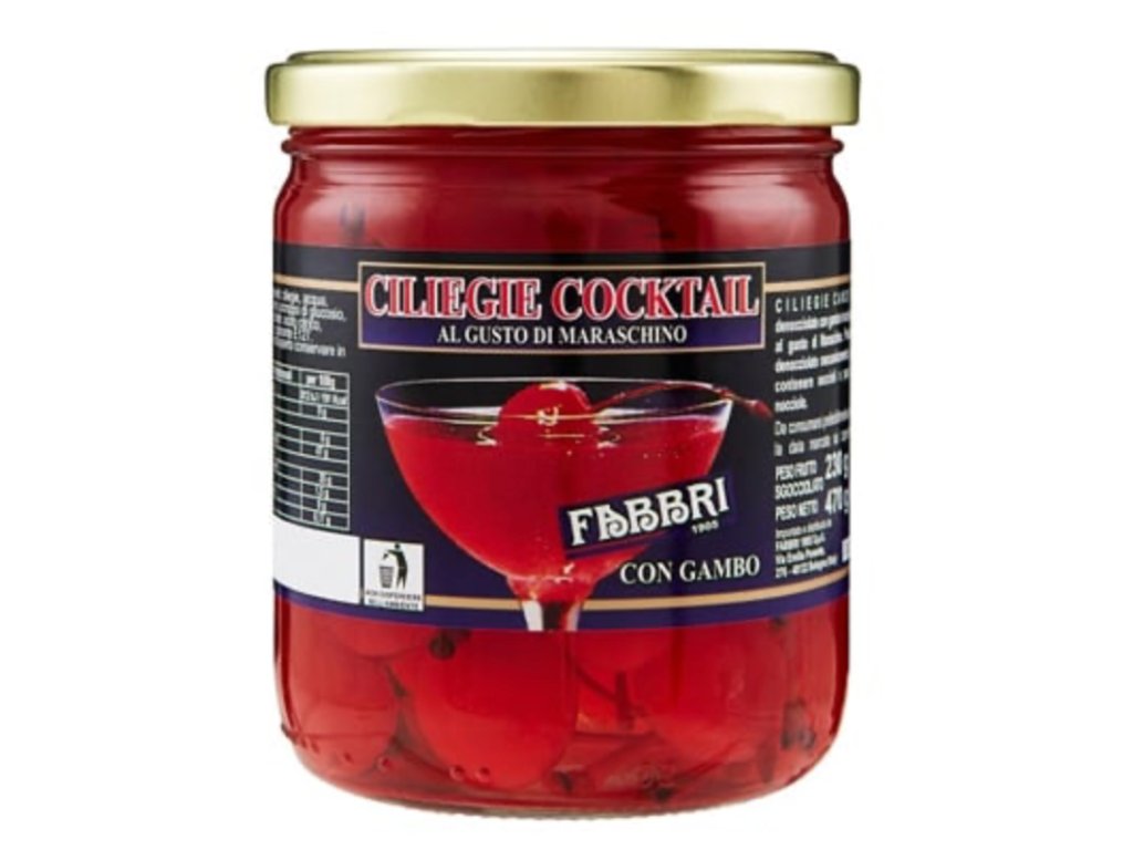 Ikonické maraschino třešně od značky Fabbri jsou již od roku 1905 synonymem kvality, elegance a výjimečné chuti. Tyto tmavě červené třešně v hustém sirupu s jemnou příchutí maraschino likéru dodají šmrnc každému koktejlu i dezertu.
