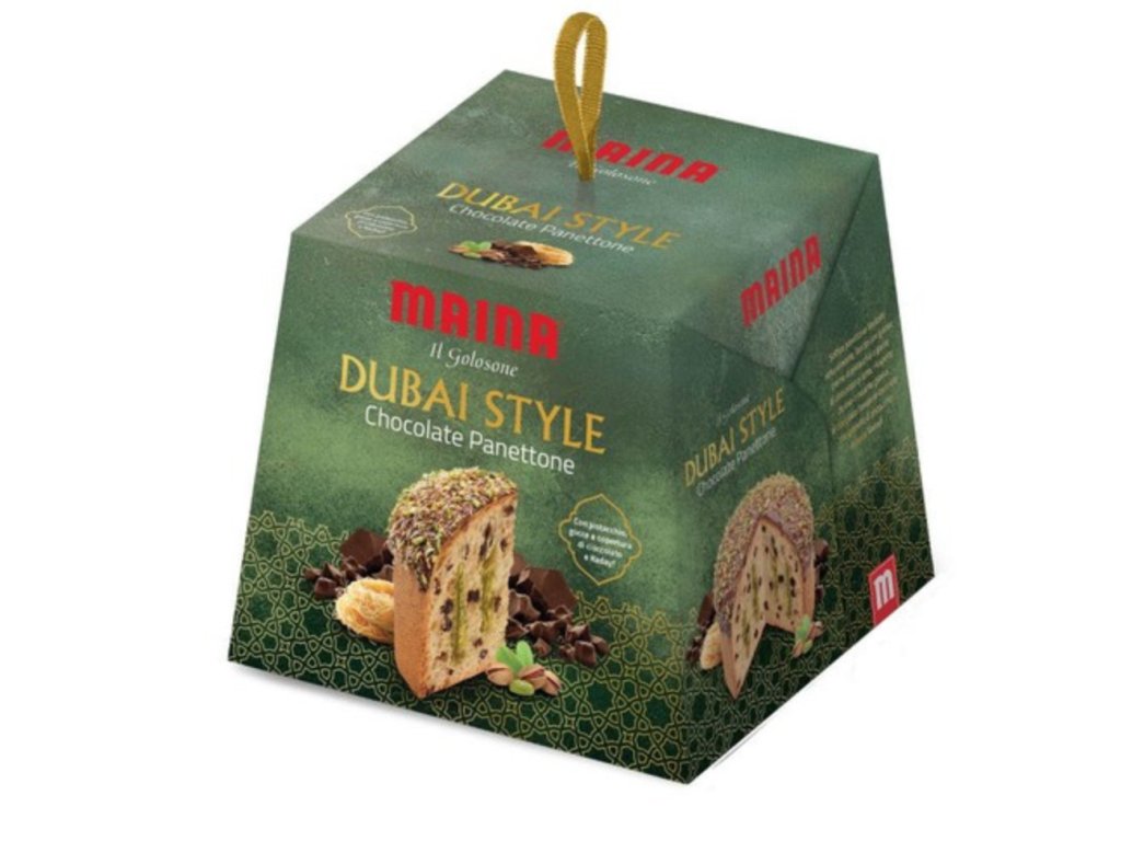 Objevte exkluzivní vánoční pochoutku: Maina Panettone Dubai Style – italský panettone v luxusním „dubajském“ stylu. Jemné těsto vyrobené podle tradiční receptury značky Maina je naplněné bohatou pistáciovou krémovou vrstvou a doplněné o kakaovou glazuru. Luxusní vzhled i chuť činí z tohoto panettone ideální volbu jako vánoční dárek, pro slavnostní chvíle nebo prostě pro chvíle, kdy chcete dopřát něco skutečně výjimečného.